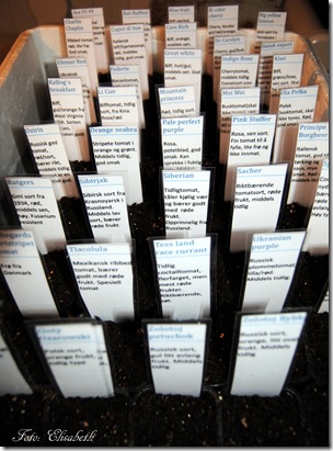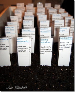 Da var årets tomatfrø plukket ut, og i år blir det 40 nye sorter som har kommet i jorden. De som såes i år er: